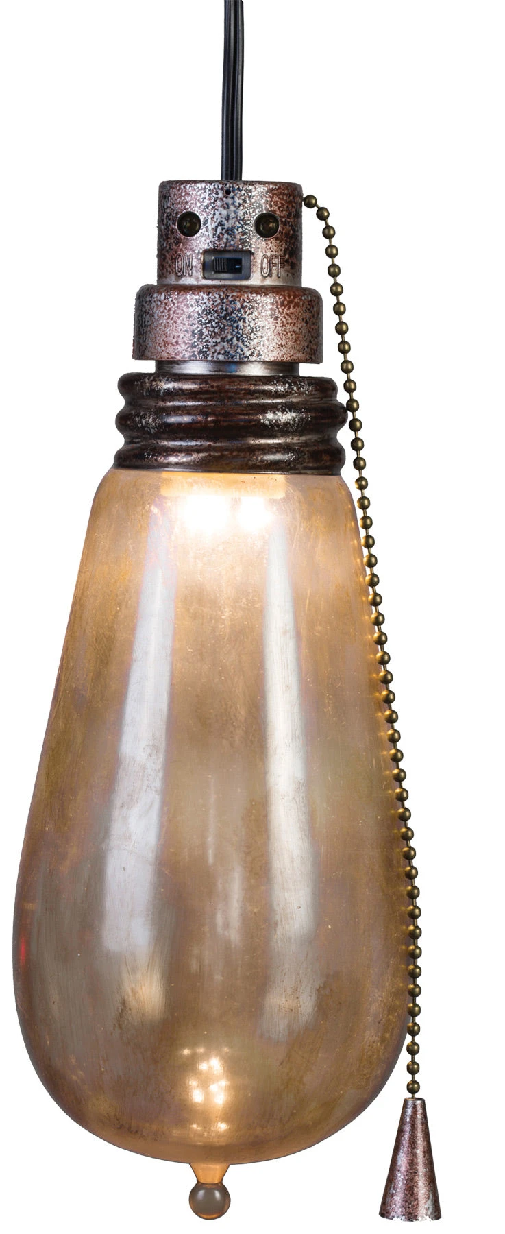 Short circuit-custy look attic light that blinks on off as thought it was short circuiting. The light itself looks old and creepy and belongs in a haunted house. Measures 9-1/2 inches tall X 4 inches wide. Powered by 110 outlet.