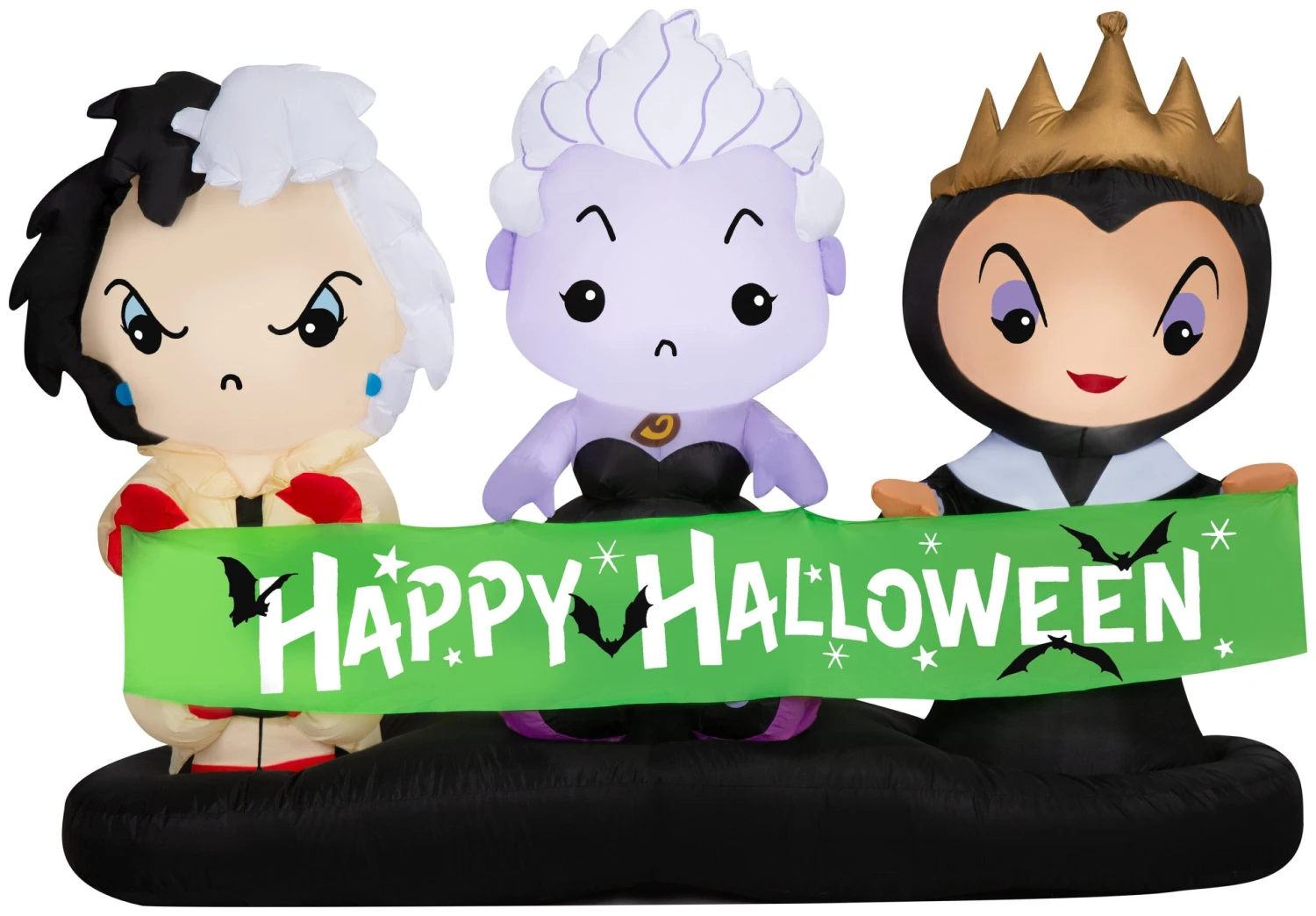 Fans of Disney Villains will love this Airblown® Inflatable trio of evil female characters! Featuring Cruella de Vil from 101 Dalmatians, Ursula from The Little Mermaid and The Evil Queen from Snow White, our villainous inflatable makes a charming addition to your indoor or outdoor Halloween decorations. Set up is in a snap for the easiest decorating ever. Just plug it in, stake it down and watch the magic unfold. Be the talk of the block with a Disney Halloween inflatable! Includes everything needed for easy outdoor setup.
