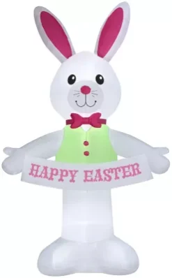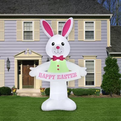 Our giant Airblown Inflatable Easter Bunny makes an eye-catching addition to your outdoor Easter decorations. Holding a “Happy Easter” banner, this giant bunny inflatable is a fun way to celebrate Easter. Setup is super simple. Just plug it in, stake it down and watch the magic unfold. Display this whimsical bunny decoration as a standalone or combine it with other Airblown Inflatables to create a custom scene. Includes everything needed for easy outdoor setup.