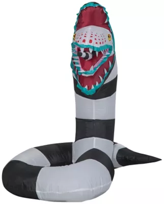 Fans of Beetlejuice will love this Gemmy Airblown Inflatable Beetlejuice Sandworm! Featuring everyone’s favorite two-headed, black and white worm, our Sandworm inflatable makes a spooktacular addition to your Halloween decorations. Setup is super simple. Just plug the inflatable in, stake it down and watch the magic unfold. Display this Beetlejuice Halloween decoration as a standalone or combine it with other Airblown Inflatables to create a custom scene.