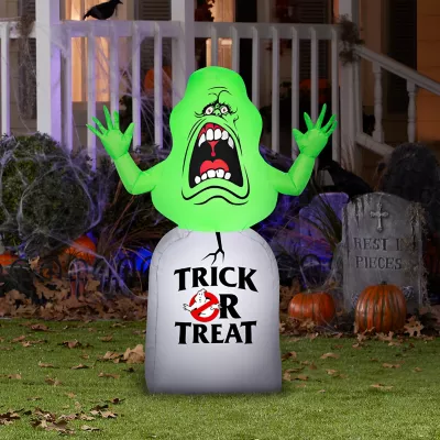 Fans of Ghostbusters will love this Gemmy Airblown Inflatable Ghostbusters Slimer on Tombstone. Accented with the Ghostbusters logo in a Trick or Treat sentiment, our Slimer inflatable makes a spooktacular addition to your Halloween decorations. Setup is super simple. Just plug the inflatable in, stake it down and watch the magic unfold. Display this Ghostbusters Halloween decoration as a standalone or combine it with other Airblown Inflatables to create a custom scene.