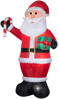 Deck the yard with the Gemmy Airblown Inflatable Santa with Gift and Candy Cane! Standing 12 ft. tall, our giant Santa inflatable makes an eye-catching addition to your outdoor Christmas decorations. Setup is super simple. Just plug it in, stake it down and watch the magic unfold. Everything needed for easy outdoor setup is included with the inflatable Santa.
