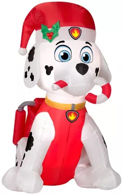 Deck the yard with an Airblown Marshall the fire dog! Accented with a Santa hat and candy cane, our PAW Patrol inflatable makes an eye-catching addition to your outdoor Christmas decorations. Setup is super simple. Just plug it in, stake it down and watch the magic unfold. Includes everything needed for easy outdoor setup.