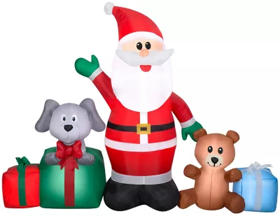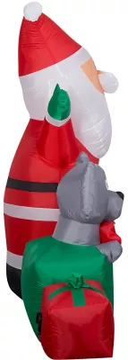 Deck the yard with the Gemmy Airblown Outdoor Inflatable Santa and Friends Scene! Featuring Santa, a puppy, a teddy bear and three gift boxes, this charming outdoor inflatable Santa scene makes an eye-catching addition to your Christmas decorations. Set-up is super simple; just plug the inflatable Santa scene in, stake it down and watch the magic unfold.