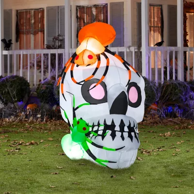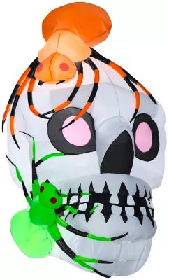 Kick up the fright factor with an Airblown Inflatable skull! Standing 5.5-feet tall, this frightful skull is covered in two with creepy crawly spiders. Accented with bright colors, it makes an eye-popping addition to your Halloween decorations. Setup is super simple. Just plug it in, stake it down and watch the magic unfold. Display this Halloween inflatable as a standalone or combine it with other Airblown Inflatables to create a custom scene. Perfect for Halloween parties and haunted houses.