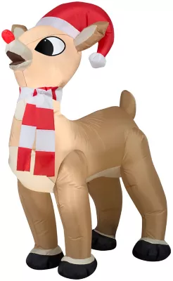 Deck the yard with an Airblown Inflatable Rudolph the Red-Nosed Reindeer! Accented with a Santa hat and striped scarf, our charming Rudolph inflatable lights up and includes a blinking red nose! Setup is super simple. Just plug it in, stake it down and watch the magic unfold. Includes everything needed for easy outdoor setup. Display this classic outdoor decoration as a standalone or combine it with other Airblown Inflatables to create a custom scene. Includes everything needed for easy setup.