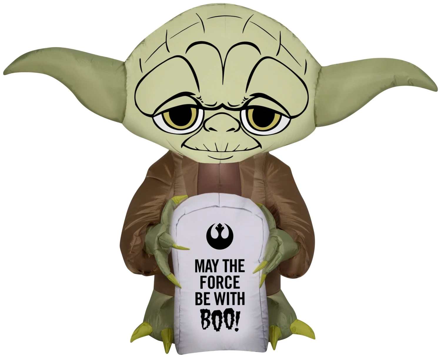 Gemmy Airblown Stylized Yoda W/Tombstone, 3 Ft Tall, Brown