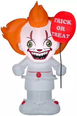 Frighten your guests with the familiar face of Pennywise. The creepy clown features bright, energy-efficient LEDs and comes with everything needed for quick and easy setup. Just plug it in, stake it down and watch the magic unfold. Display this Halloween decoration as a standalone or combine it with other Airblown Inflatables to create a custom scene.