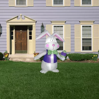 Make Easter hippity-hoppity-happity with this Easter Bunny decked out in purple and green! Accented with a silly expression, this funny bunny inflatable makes an eye-catching addition to your Easter decorations. Setup is super simple. Just plug it in, stake it down and watch the magic unfold. Includes everything needed for easy outdoor setup.