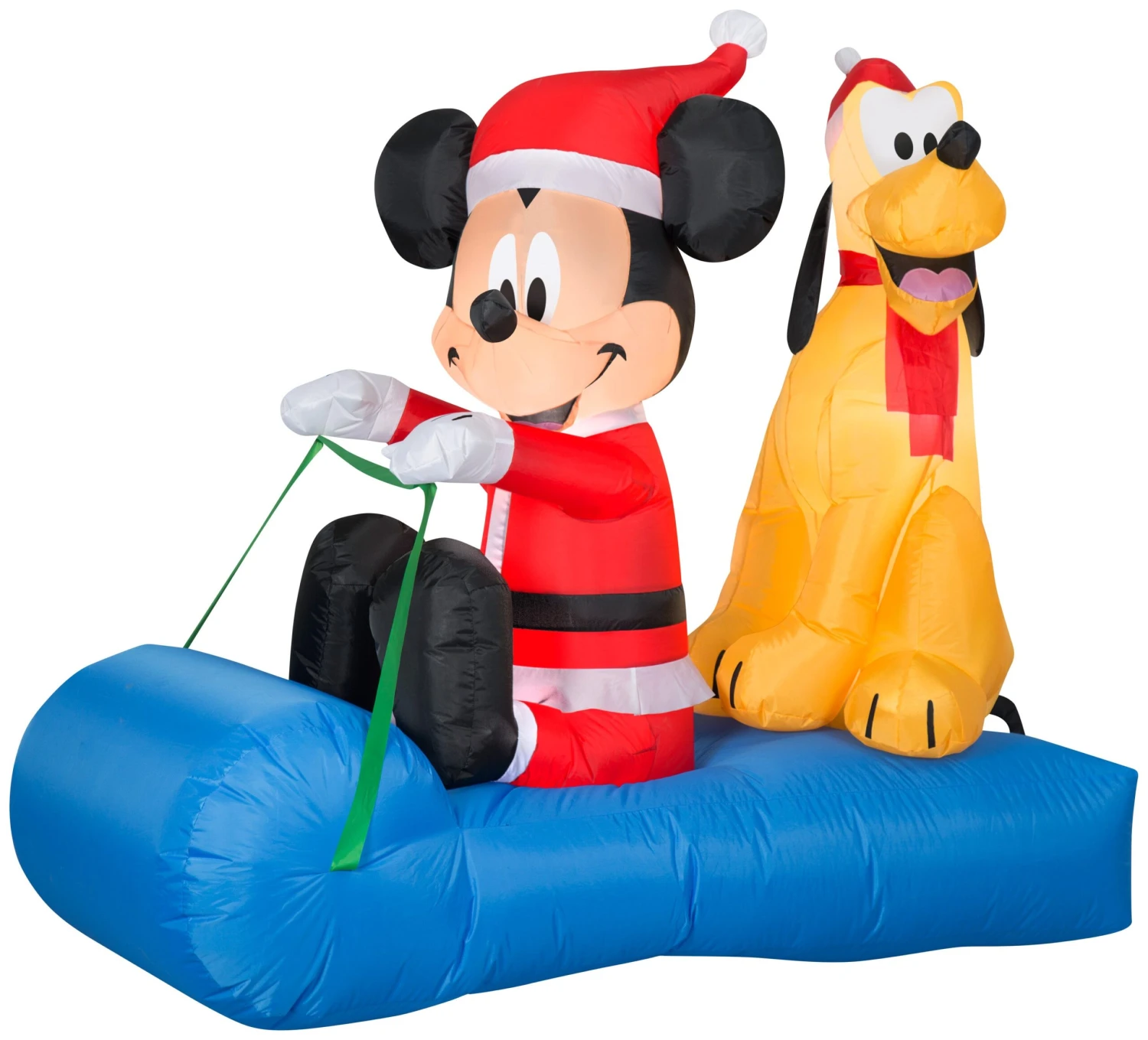 Gemmy Christmas Airblown Inflatable Inflatable Mickey Mouse And Pluto Sledding Scene, 4.5 Ft Tall