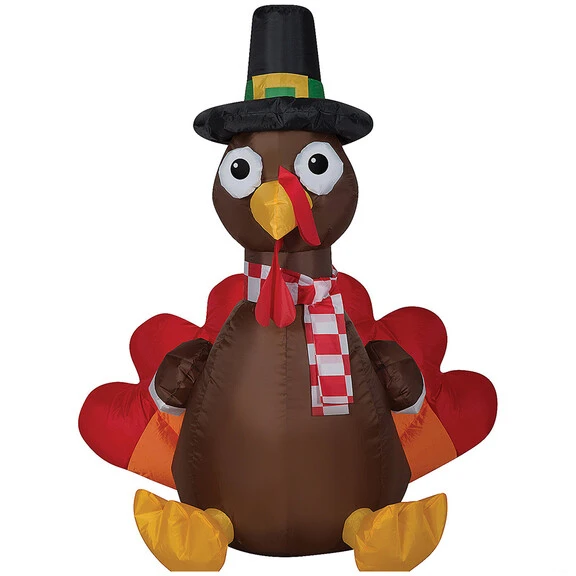 Gather around the Giant Inflatable Festive Fowl for Thanksgiving with Family and Friends for a bright delight. Its light-weight design self inflates effortlessly in a matter of seconds when plugged into an outlet. Vibrant LED lights illuminate the burly bird for clear visability for all to see at night. An included set of stakes keeps the Turkey up right and ready to greet people for a filling feast. Dont miss out on one of the biggest parts of the fall season with outdoor decor people will want to gobble up!