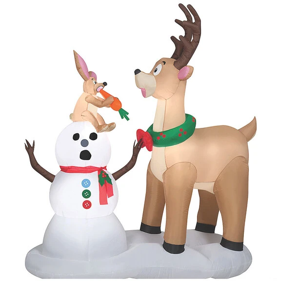Gemmy Giant Airblown Outdoor Inflatable Snowman Hot Air Balloon Scene With Santa