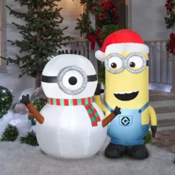 Gemmy Christmas Airblown Inflatable Kevin Building Snowman Scene Universal, 5 Ft Tall, White