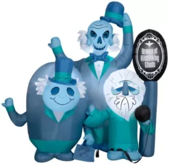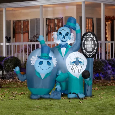 These weary dead travelers need a lift! Featuring three ghostly hitchhiking gents from days gone by, this Haunted Mansion Airblown® Inflatable makes an eye-popping addition to your Halloween decorations. Includes Phineas, Ezra and Gus in a hitchhiking stance with a “Beware of Hitchhiking Ghosts” sign. Setup is super simple. Just plug it in, stake it down and watch the magic unfold. Be the talk of the block with a Haunted Mansion Hitchhiking Ghosts inflatable. Includes everything needed for easy outdoor setup.