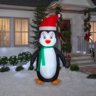 Delight guests and passersby with an adorable Airblown® Inflatable penguin decked out for the season with a Santa hat and green scarf. Setup is super simple. Just plug it in, stake it down and watch the magic unfold. Display this whimsical holiday decoration as a standalone or combine it with other Airblown characters to create a custom scene. Includes everything needed for easy outdoor setup.