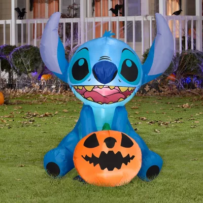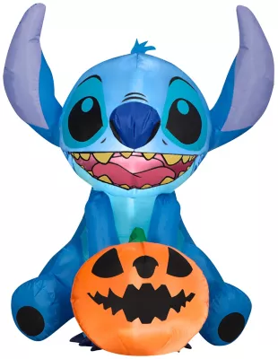 Make a spooktacular addition to your Halloween decorations with an Airblown® Inflatable Stitch! Featuring everyone’s favorite blue alien, our Stitch inflatable includes a jack-o’-lantern styled with a matching smile. This adorable Stitch inflatable sets up in a flash for the easiest Halloween decorating ever. Be the talk of the block with a Stitch Halloween inflatable! Includes everything needed for easy outdoor setup.