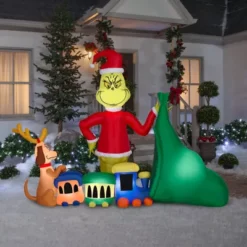 New! Gemmy Airblown-Grinch Putting Train In Santa Sack-Large Scene-Dr. Seuss