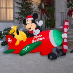 New! Gemmy Animated Airblown-Mickey And Pluto Clubhouse Airplane Scene With Leds-Large Scene-Disney