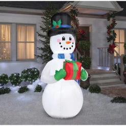 Gemmy Industiries SS114274G Blow Up Inflatable Snowman With Present Outdoor Yard Decoration